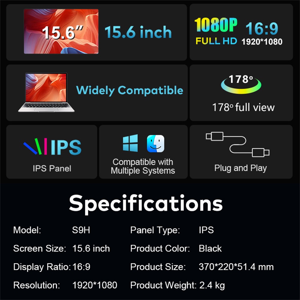 *Portable dual-screen monitor:2 pcs of 15.6 inch full view display